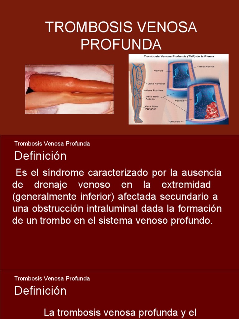 Tvp N N La Trombosis Venosa Profunda Es from slidetodoc.com Si la trombosis venosa profunda es secundaria a una causa específica y temporal (como una cirugía o un medicamento que se ha dejado de tomar), se debería continuar con la terapia anticoagulante de 3 a 6 meses. La trombosis venosa superficial es más fácil de detectar. Una trombosis venosa es la formación de un coágulo de sangre en el interior de una vena, que puede deberse a un problema de hipercoagulabilidad, lesiones de la pared del vaso o a un problema de éxtasis (estancamiento) de la sangre. La trombosis venosa profunda es la coagulación de la sangre en una vena profunda de un miembro (en general, la pantorrilla o el muslo) o de la pelvis. La trombosis venosa profunda puede desarrollarse si tiene ciertas afecciones médicas que afectan la forma en que su sangre se coagula. Pero, ¿qué es la trombosis venosa cerebral, también llamada trombosis de senos venosos cerebrales? Esta puede clasificarse en trombosis venosa superficial (tromboflebitis superficial), o bien, trombosis venosa profunda. ¿qué es la trombosis venosa profunda (tvp)?
